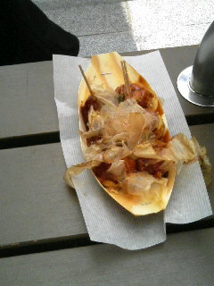 まずは、行きに「開店前なので」と断られたたこ焼き屋さんにリベンジ